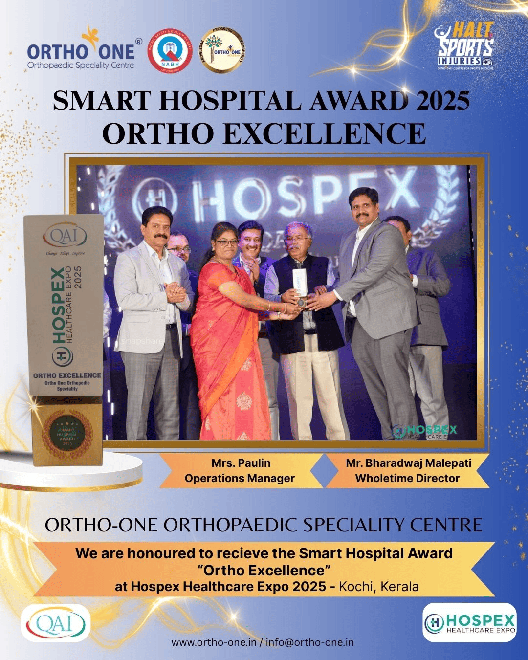 We are honoured to recieve the smart hospital award "Ortho Excellence" at Hospex Healthcare Expo 2025 - Kochi, Kerala.