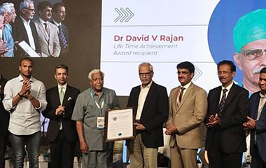 Dr. David V. Rajan, receiving the Life Time achievement award at the 19th Annual Conference of Indian Arthroscopy Society, Coimbatore 2022.